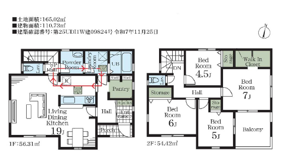 | 間取詳細 | (1F)LDK19.0帖(2F)洋7.0帖、洋6.0帖、洋5.0帖、洋4.5帖 | ||