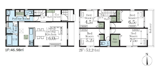 | 間取詳細 | (1F)LDK16帖(2F)洋7.5帖、洋6.5帖、洋5.2帖、洋4.5帖 | ||