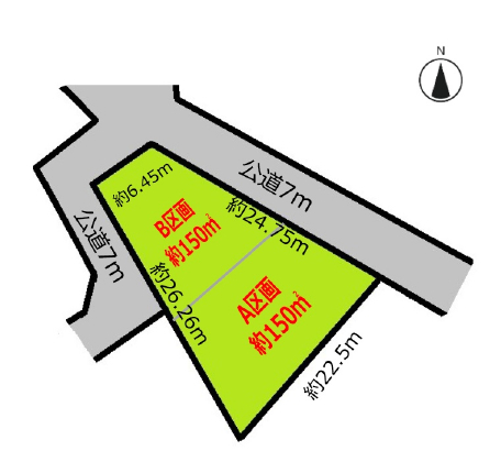 | 接道 | 北 7m(幅員) 公道 6.4m(接面) 東 7m(幅員) 公道 24.7m(接面) |