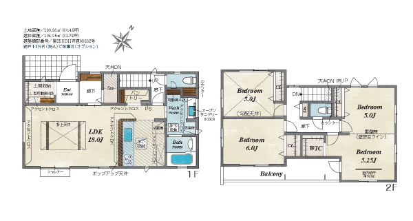 税制優遇の長期優良住宅です。間取りは4LDK。リビングは広々16帖で家族団らんの場に。隣の和室5.2帖は客間やお昼寝スペースにいいですね。全室収納付きです。浴室乾燥機付きなので雨の日のお洗濯物も安心です。カースペースは約2台分です。