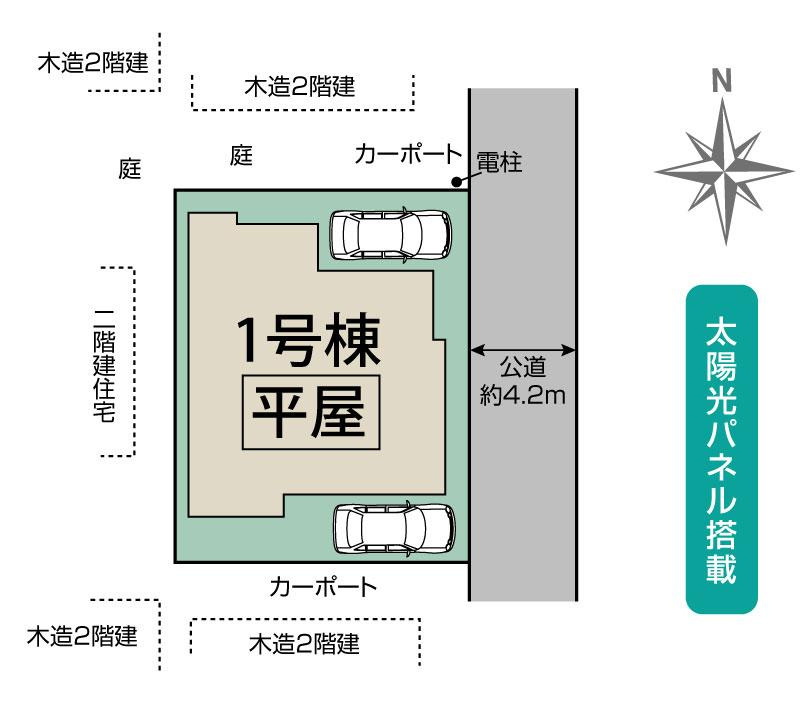 | 税制優遇の長期優良住宅で、動線を意識した平屋建です。間取り変更可能な3(4)LDKです。リビングはゆったり17.3帖で家族団らんの場に。勾配天井採用で開放感があります。忙しい朝に嬉しい食器洗浄乾燥機付きです。全室収納付きです。浴室乾燥機付きなので雨の日のお洗濯物も安心です。太陽光発電でエコな暮らしを♪カースペースは2台分です。 |