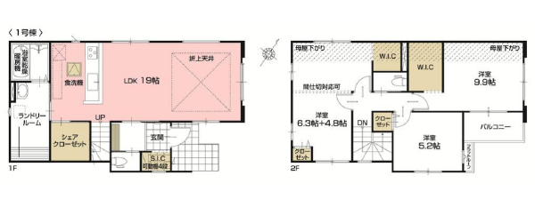 | 間取り変更可能な3(4)LDKの新築2階建です。1階リビングは広々19帖で家族ゆったりくつろげます。対面キッチンなのでお子様の様子が見られて安心です。折上天井が開放感を演出します。ランドリールームがあり、1カ所で洗濯が終わりとても便利です。シェアクローゼット、ウォークインクローゼットがあり、たっぷり収納できます。シューズインクロークには傘やベビーカーを置けます。カースペースは並列2台分です。 |